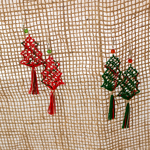 Custom holiday handmade earrings created using the local Puerto Rican Mundillo Lace or Bobbin Lace technique. Perfect to show off on a special occasion or just enjoy on a daily basis.